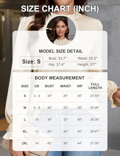 • Note: The blouses are vacuum packed, and it is natural for them to wrinkle when opened. It will be great after ironing or washing. We strongly suggest that you have your body measurements taken first, and then refer to our size chart before order, S=US 2-4, M=US 6-8, L=US 10, XL=US 12.