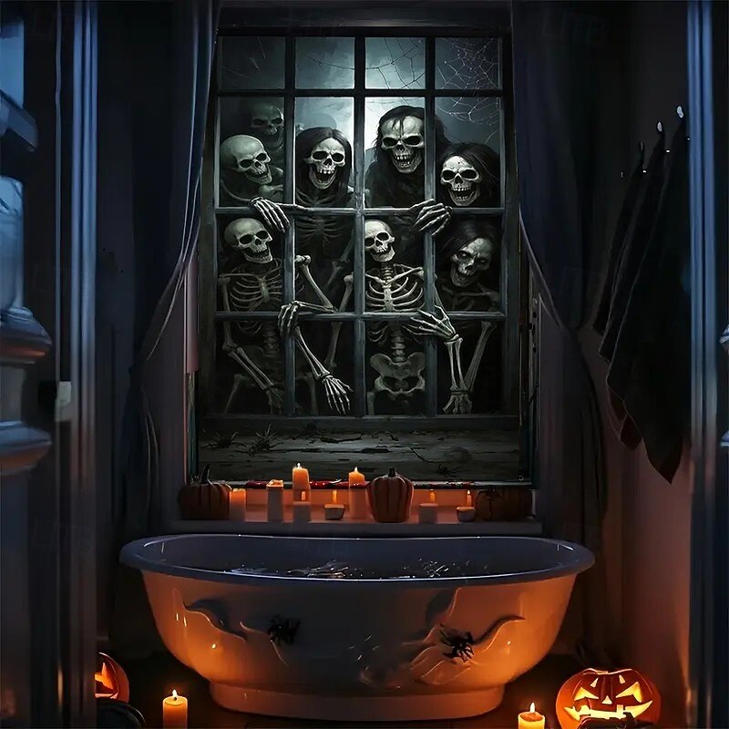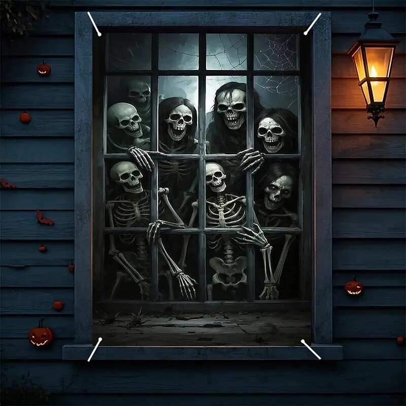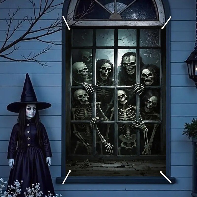 $15.99 - Halloween Window Curtain Skeleton with Outstretched Hands, Creepy Door Cover, Window cover, Wall Tapestry for 2025 Halloween Haunted House Decoration 2025. Shop for cheap Halloween Door Covers online? Buy at lightinthebox.com on sale today!