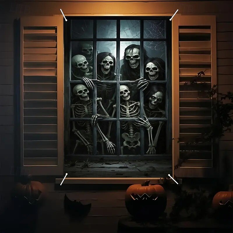HOT ! Halloween Window Curtain Skeleton with Outstretched Hands, Creepy Door Cover, Window cover, Wall Tapestry for 2025 Halloween Haunted House Decoration