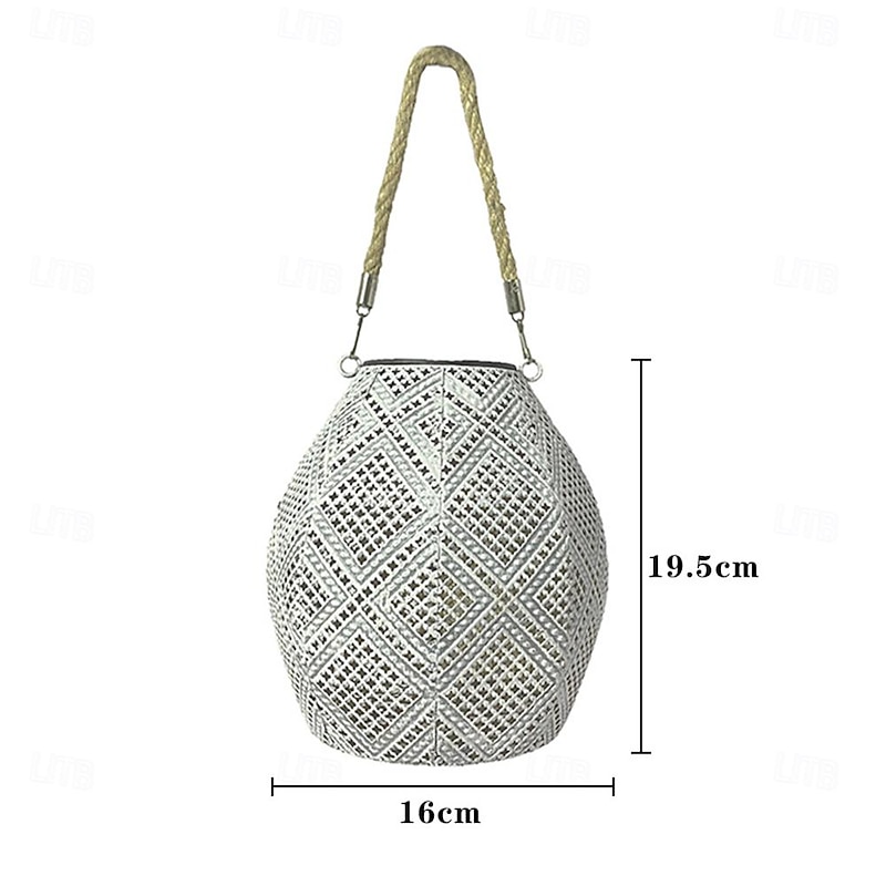 Solar Outdoor Lamp Hollow Lantern Waterproof Hemp Rope Iron Art Lamp Imitation Cloth Pattern Courtyard Lamp for Scene Decor, Festivals Decor 1