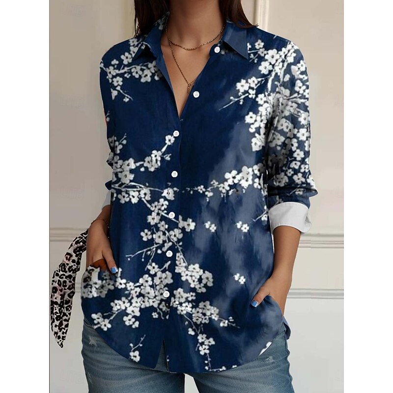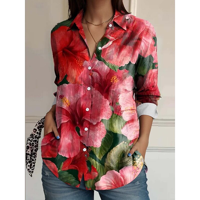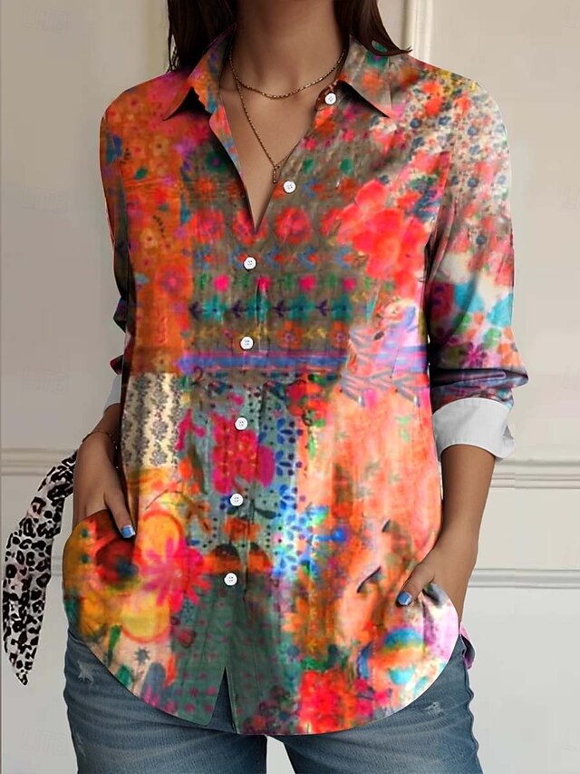 More information about Women's Shirt Button Down Tunic Shirt Collar Long Sleeve Floral Casual Regular Tops Work Daily s Print Pink Red Blue Orange Rainbow Spring Fall