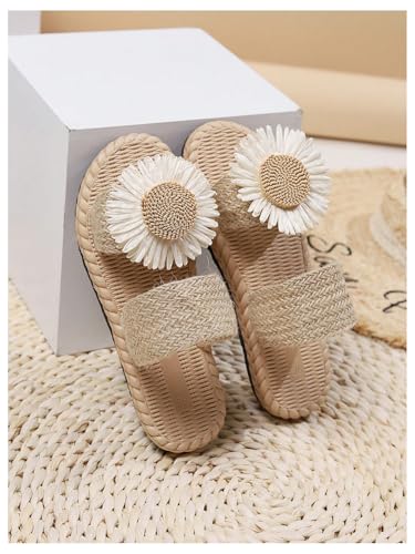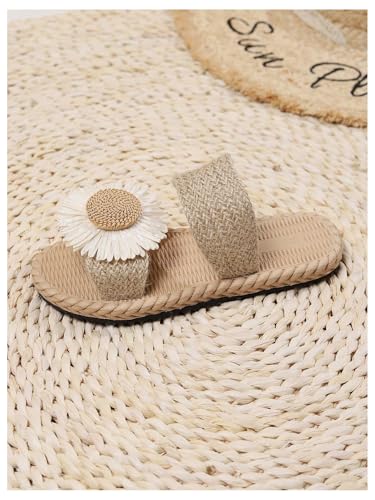 OYOANGLE Girl's Floral Double Strap Linen Slide Sandals Open Toe Beach Vacation Straw Sandal 7