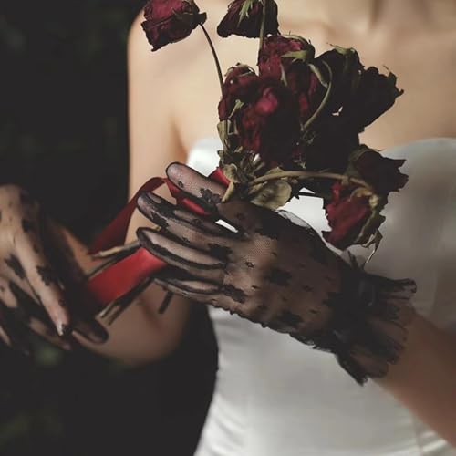 More information about Black Short Lace Gloves Women's Wedding Gloves Sheer Floral Tea Party Gloves 20s Evening Opera Gloves Bridal Gloves