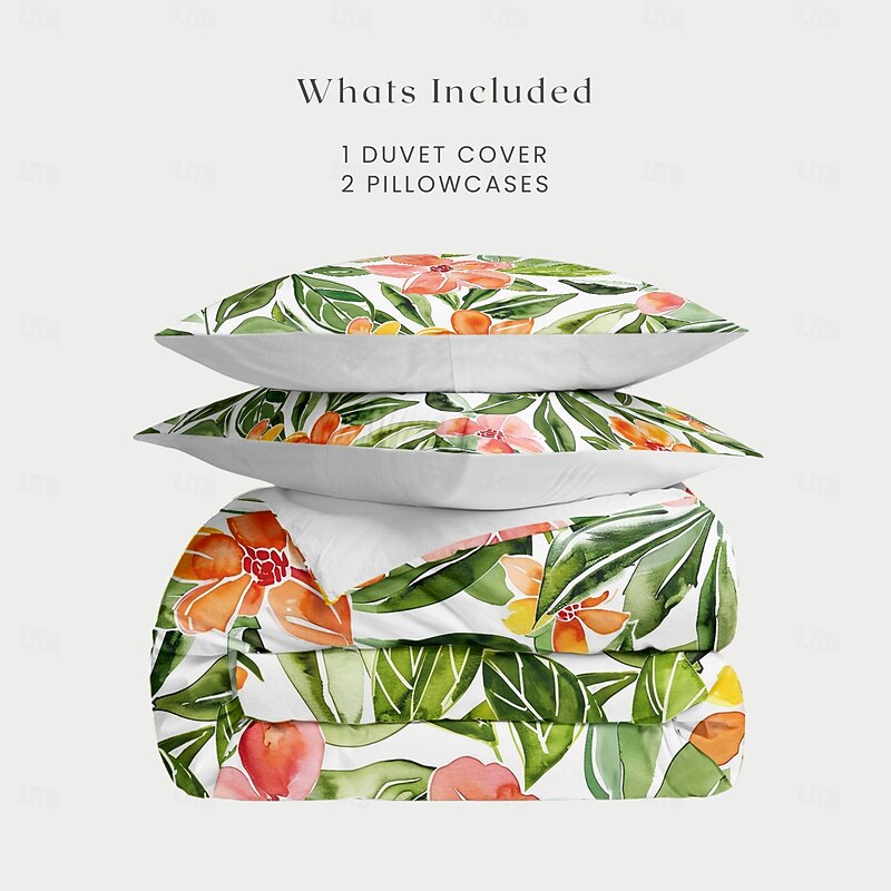 HOT ! Geometric Vintage Duvet Cover Set Cotton Tropical Plants Pattern Set Soft 3-Piece Luxury Bedding Set Home Decor Gift Twin Full King Queen Size Duvet Cover