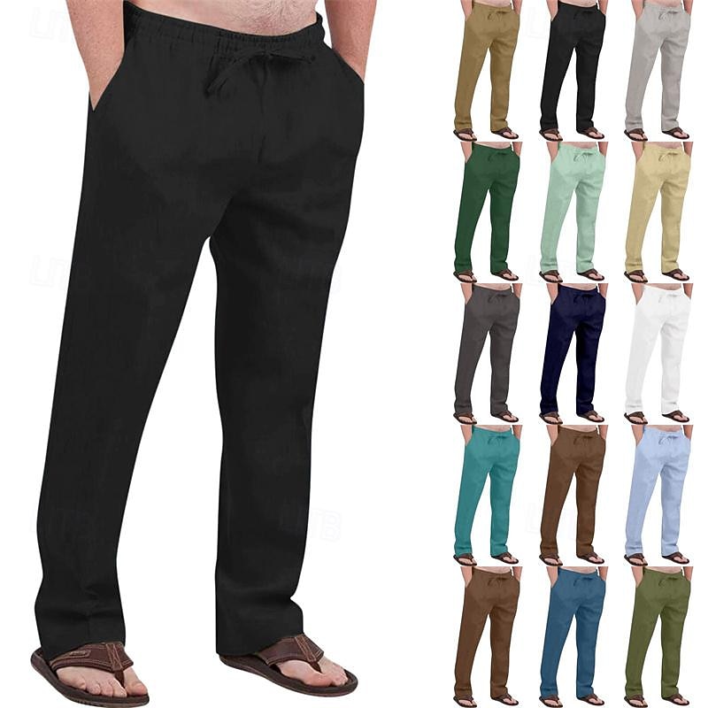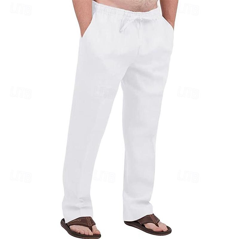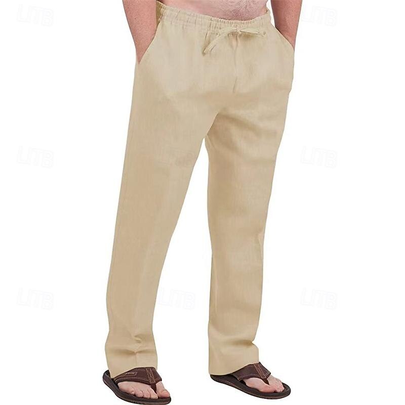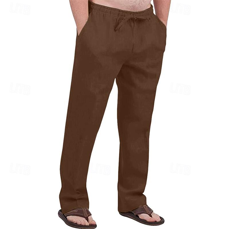 More information about Men's Linen Pants Trousers Summer Pants Beach Pants Pocket Drawstring Elastic Waist Plain Comfort Breathable Daily Holiday Vacation Hawaiian Boho Dark Brown Black