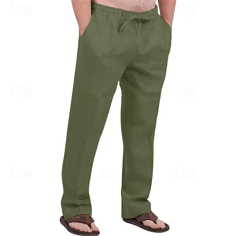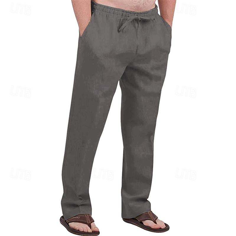 HOT ! Men's Linen Pants Trousers Summer Pants Beach Pants Pocket Drawstring Elastic Waist Plain Comfort Breathable Daily Holiday Vacation Hawaiian Boho Dark Brown Black