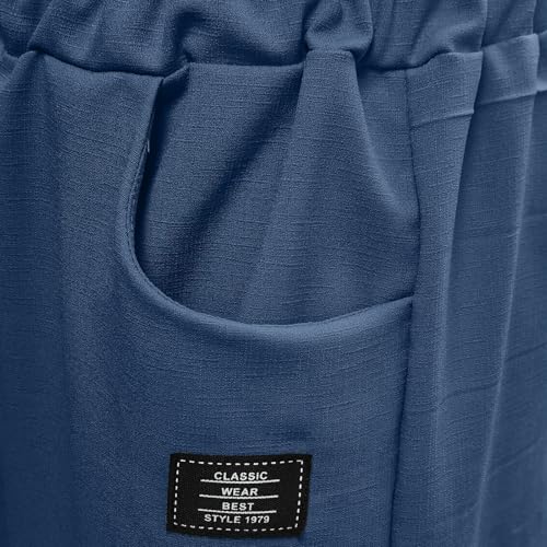 Men's Linen Pants Casual Fashion Wide Leg Elastic Waistband Cargo Pants Baggy Lightweight Joggers Pant with Pockets 5