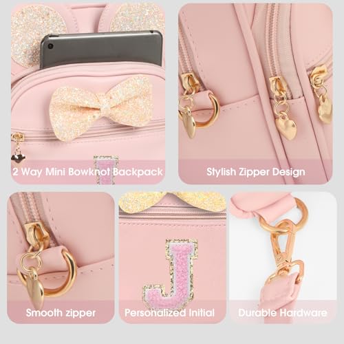 Mini Backpack for Girls Bowknot Cute Leather Backpack Toddler Purse Birthday Gifts for Kids Girls Letter J 2