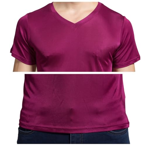 More information about Mens Mulberry Silk T Shirt V Neck TEE Shirts Short Sleeve Undershirt Lightweight Knit Silk Workout Shirts Blouse Tops
