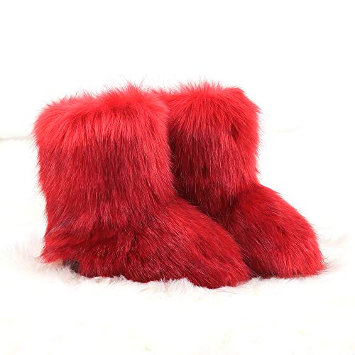 LVCOMEFF Kid Girl Boy Toddler Faux Fur Snow Boot with Fur Lining Winter Warm Outdoor Furry Fluffy 4