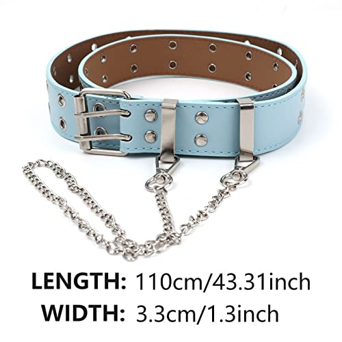 eYLun Double Grommet Leather Belt Punk Studded Belt Rock Jeans y2k Belt for Women Men 3