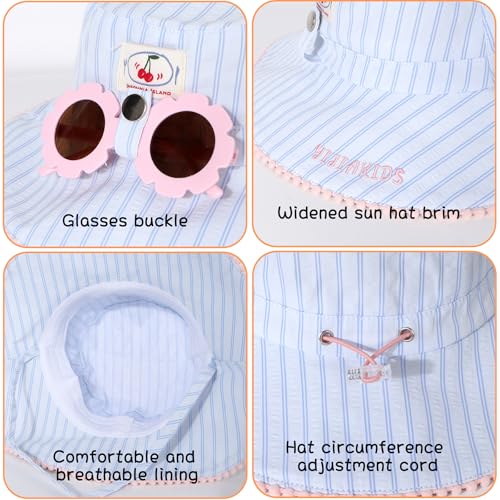 Kids Wide Brim Sun Hat with Detachable Sunglasses Adjustable Striped Summer Bucket Hat for Girls Outdoor Cap for 4-10 Years 4