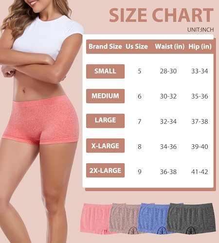 Womens Boys Shorts Underwear Seamless Full Coverage Briefs Soft Stretch Boxer Shorts For Women Multipack 4