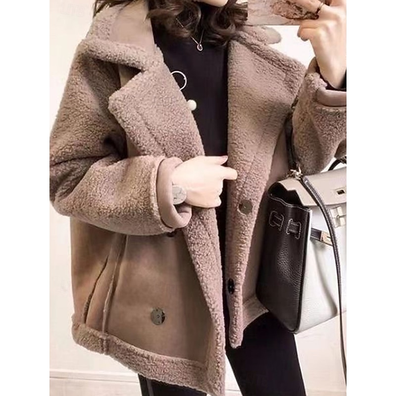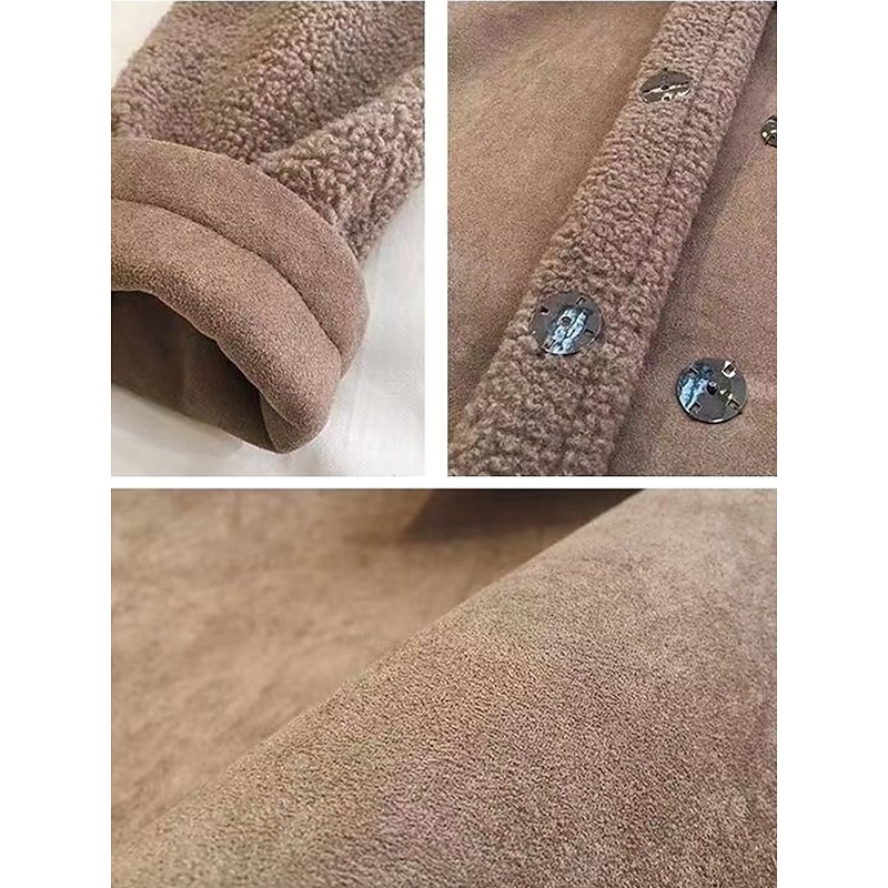 More information about Women's Fleece Jacket Teddy Coat Hoodie Jacket Warm Breathable Buttons Pocket Fleece Lined Casual Plain Vacation Street Daily Wear Going out Single Breasted Regular Turndown Regular Fit Long Sleeve