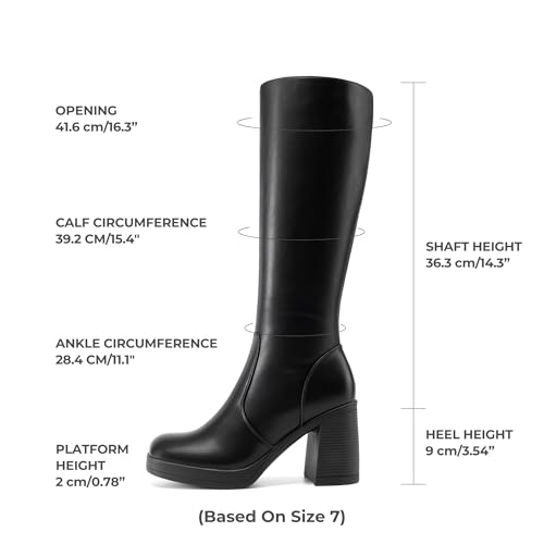 • Slimming Effect: Walk with confidence in these classic black boots. These boots for women offer the perfect height elevation with a 3.54-inch heel and 0.97-inch platform.