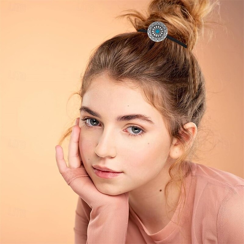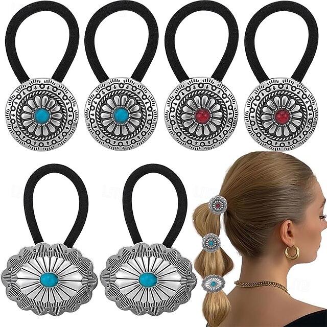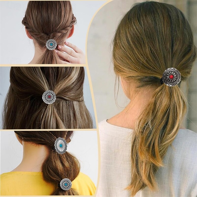 $12.49 - 6 PCS Metal Western Style Ponytail Holders Boho Hair Ties Flower Circular Hair Ropes Vintage Squash Blossom Hairs Rope Vintage Turquoise Concho Squash Blossom Hairs Bands for Women Girls 2025. Shop for cheap Hair Styling Accessories online? Buy at lightinthebox.com on sale today!