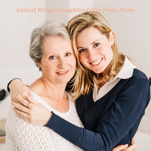 HOT ! Roe Dolph Mother Daughter Rings Initial Rings Daughter Gifts from Mom Silver Cubic Zirconia Heart Letter Rings Birthday Gifts for Daughter Christmas Stocking Stuffers Gifts