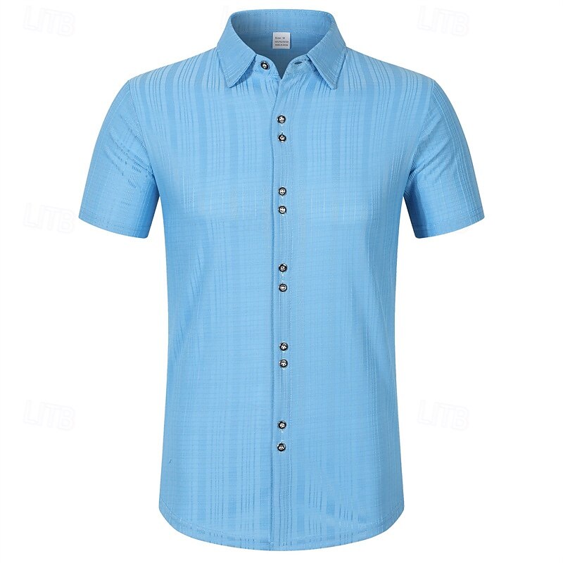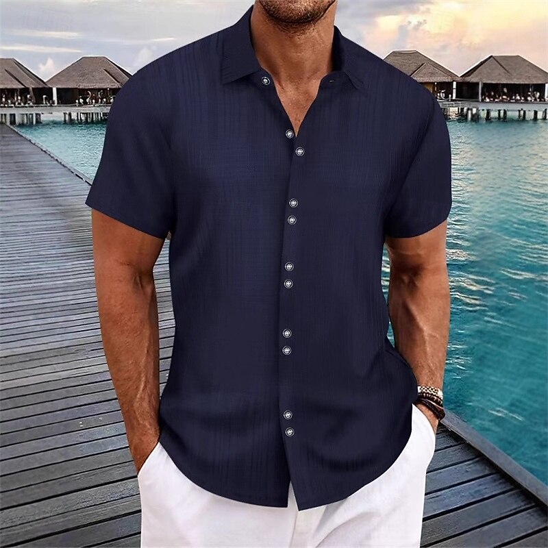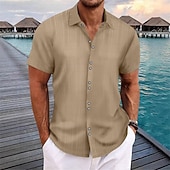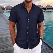 More information about Men's Shirt Summer Shirt Casual Shirt Beach Shirt Button Up Shirt Black White Dark Navy khaki Light Blue Short Sleeve Plain Shirt Collar Vacation Hawaiian Clothing Apparel Polyester Fashion Casual