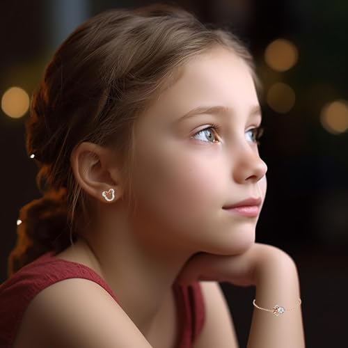 Kaguya Silver Bracelets for Women - Rose Gold Sterling Silver Clear Zirconia Cute Mouse Adjustable Infinity Charm Link Bracelets for Women Girls, Friendship Bracelets 1