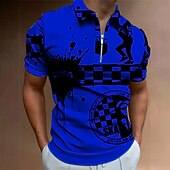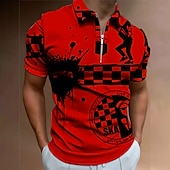 More information about Music Festival Men's Music Zip Polo Shirts Golf Shirt Short Sleeve Polo Shirts Collared Shirts Casual Vacation Wear Festival Wear Party Outfits 3D Print Quarter Zip Polo White Red Navy Blue