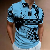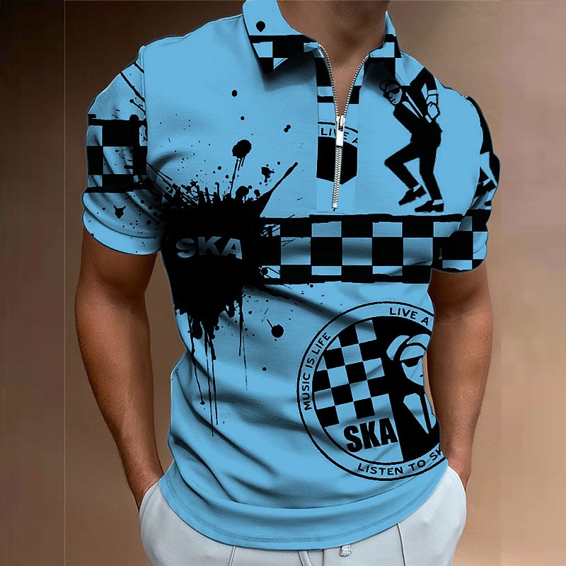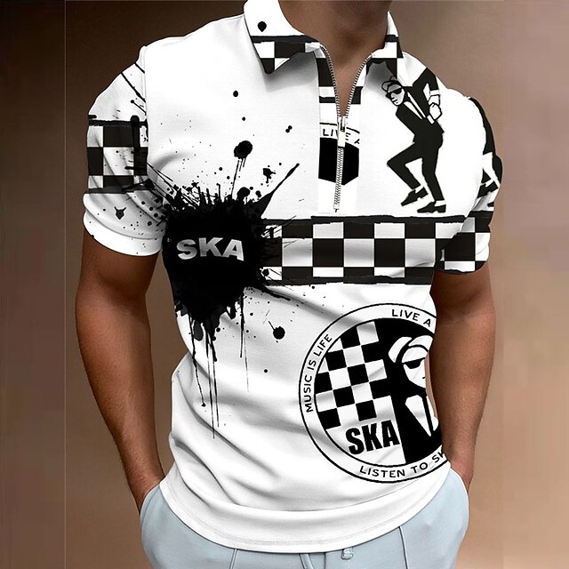 HOT ! Music Festival Men's Music Zip Polo Shirts Golf Shirt Short Sleeve Polo Shirts Collared Shirts Casual Vacation Wear Festival Wear Party Outfits 3D Print Quarter Zip Polo White Red Navy Blue