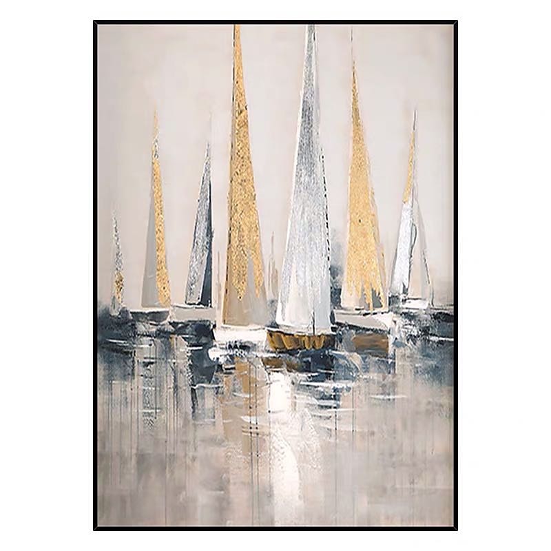 Handmade Oil Painting Canvas Wall Art Decoration Golden and Grey Sailboat for Home Decor Rolled Frameless Unstretched Painting 1