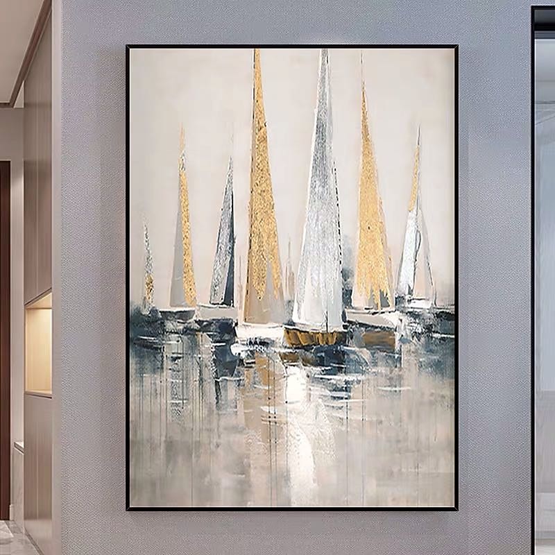 Handmade Oil Painting Canvas Wall Art Decoration Golden and Grey Sailboat for Home Decor Rolled Frameless Unstretched Painting 8