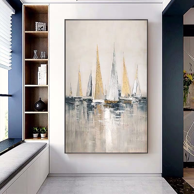 Handmade Oil Painting Canvas Wall Art Decoration Golden and Grey Sailboat for Home Decor Rolled Frameless Unstretched Painting 7