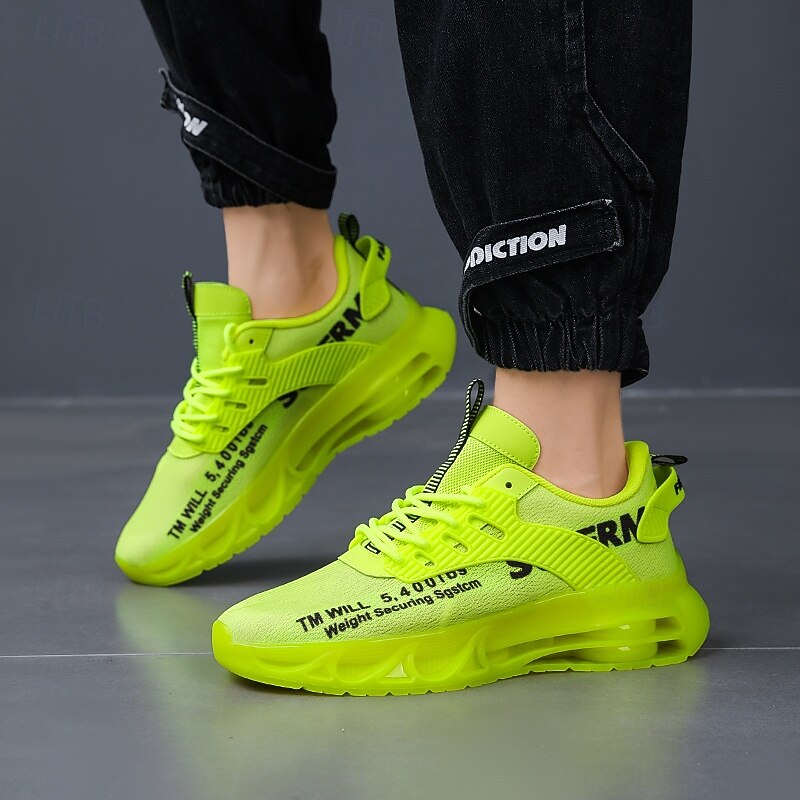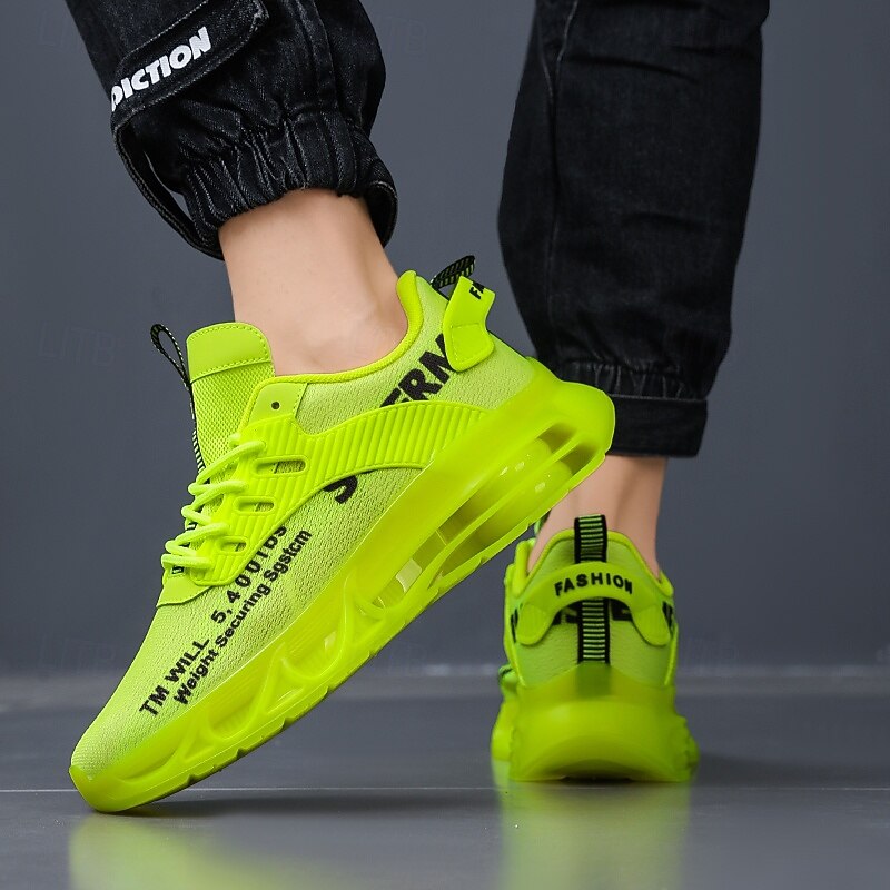 HOT ! Men's Neon Green Air Cushion Sneakers – Fashion Lightweight Sports Shoes for Running, Walking and Casual Streetwear