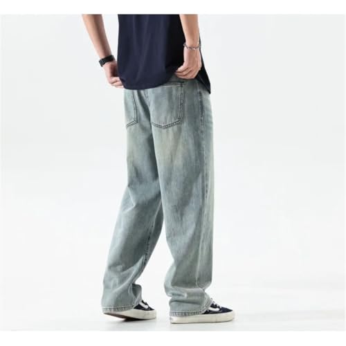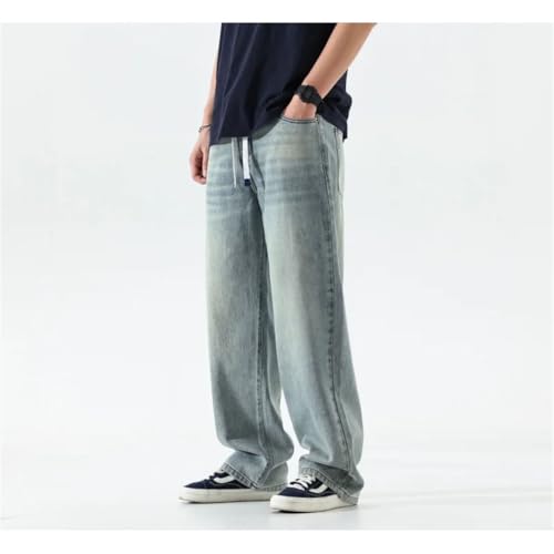 HOT ! Men's Classic Straight Loose Jeans Vintage Elastic Waist Light Color Jeans