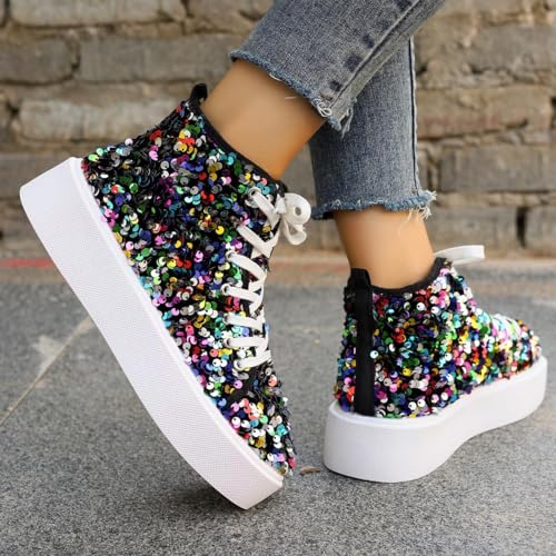 HOT ! Womens Glitter Sneakers Casual Lace up Sneakers Sparkly Shoes Rhinestone Bling Wedding Bridal Shiny Sequin Shoes