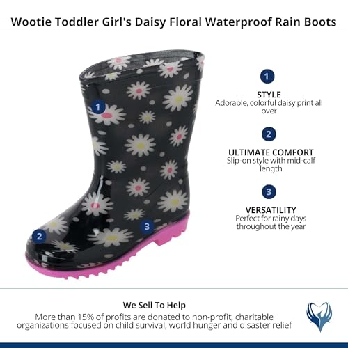 More information about Wootie Toddler Girl's Daisy Floral Waterproof Rain Boots, 9, Black