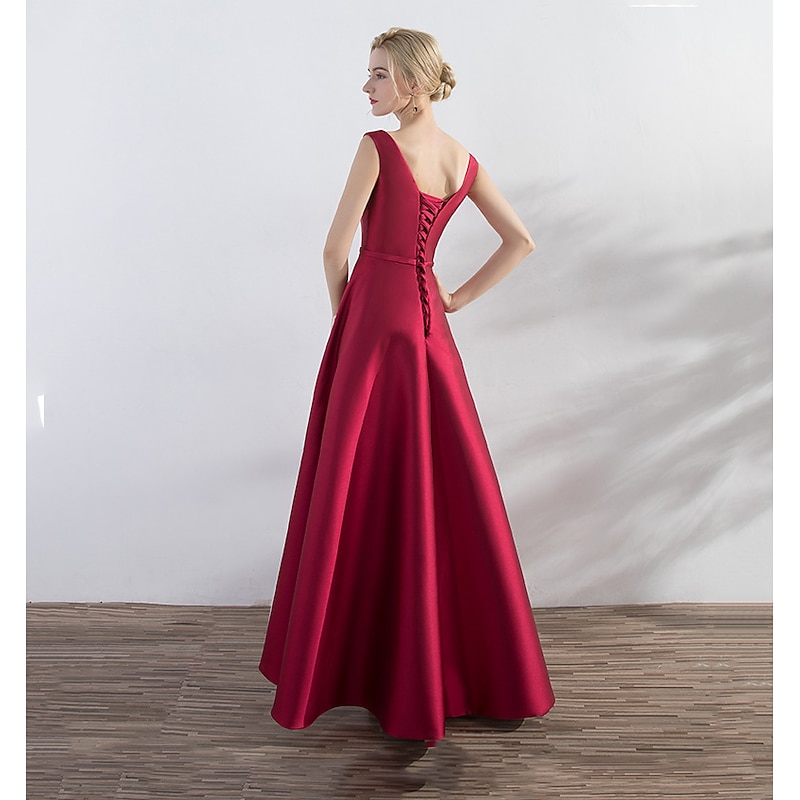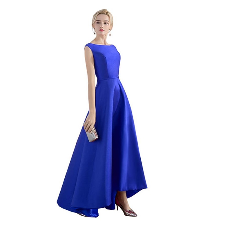 More information about A-Line Evening Gown Dress Wedding Guest Party Wear Asymmetrical Sleeveless Jewel Neck Satin with Sleek dress to impress