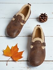 More information about Women's Wide Width Brown Fleece Lined Buckle Loafers, Comfortable Warm Casual Shoes for Winter Home or Outdoor