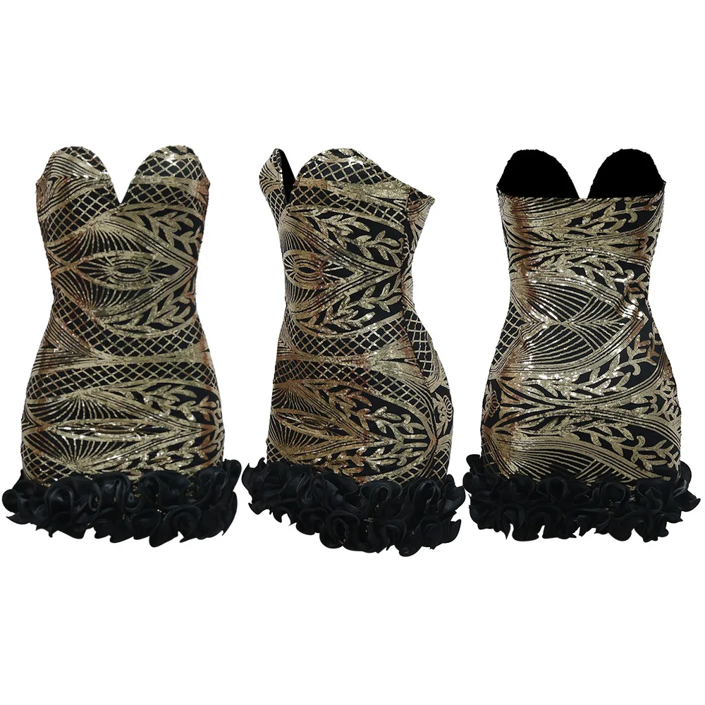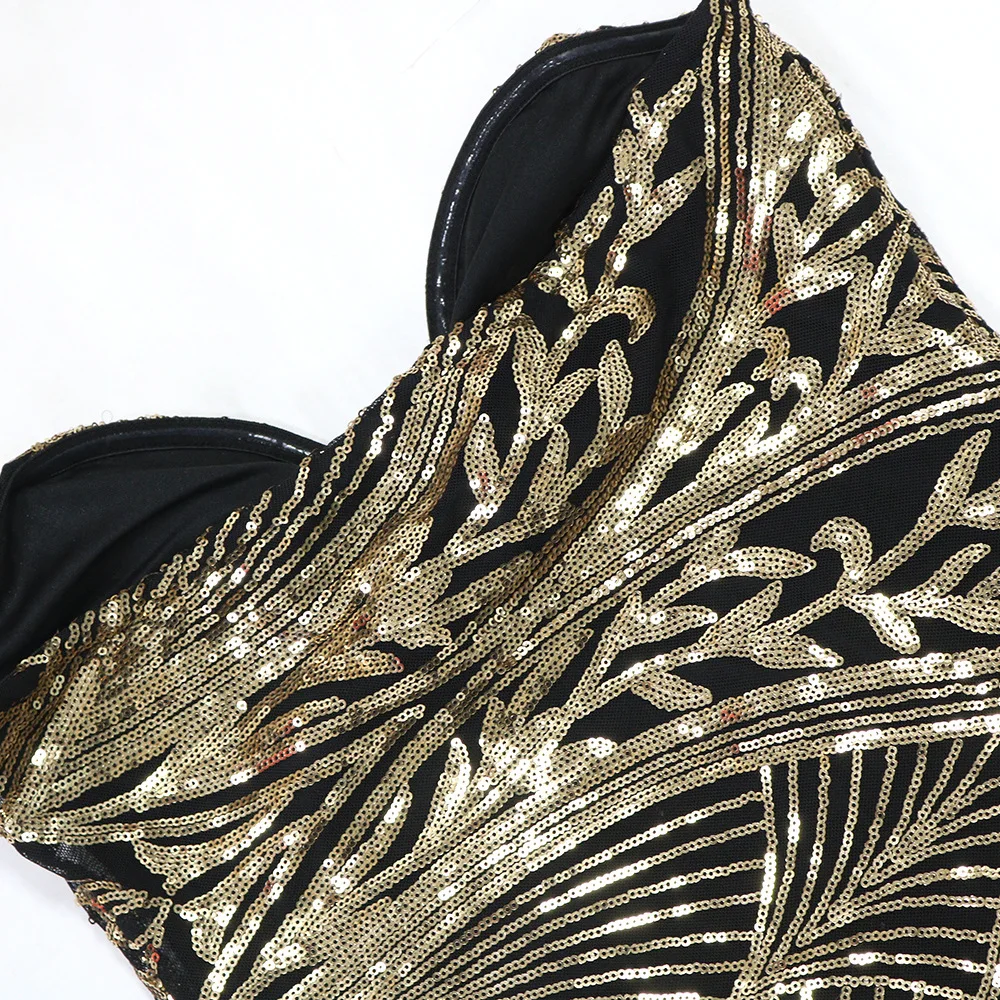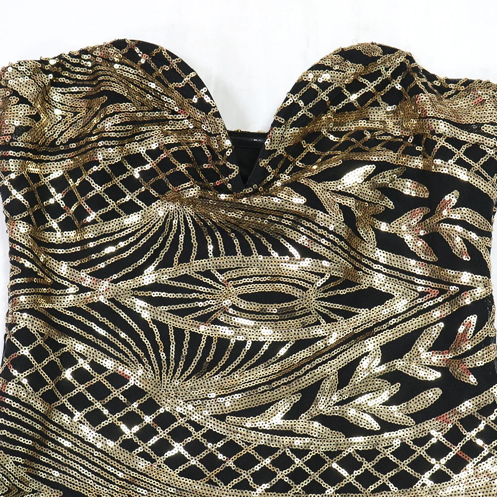 SpecificationsChoice: YesClosure Type: zipperDecoration: SequinedDresses Length: Above Knee,?Elasticity:? StretchFit Type: SlimMaterial: Polyester BlendedNeckline: Sweetheart?Party DressSeason: All seasonSleeve Style: StraplessPLEASE FOLLOW SIZE CHART?