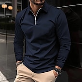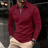 More information about Men's Zip Polo Polo Shirt Outdoor Casual Lapel Quarter Zip Long Sleeve Fashion Basic Solid / Plain Color Quarter Zip Spring & Fall Regular Fit Black White Wine Dark Navy Gray Zip Polo