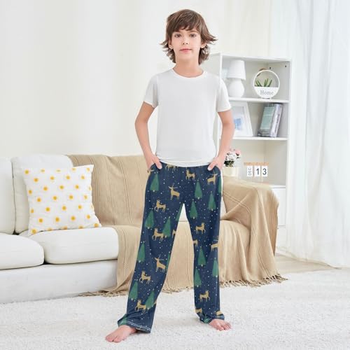 More information about Golden Reindeer Xmas Tree Boys Long Pants Soft Trousers Elastic Waist Kids Lounge Bottoms with Pockets S-XL