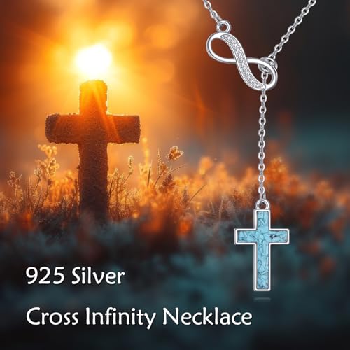 URONE Infinity Cross Necklaces 925 Sterling Silver Turquoise/Opal Cross Necklace Infinity Jewelry Gifts for Women 1