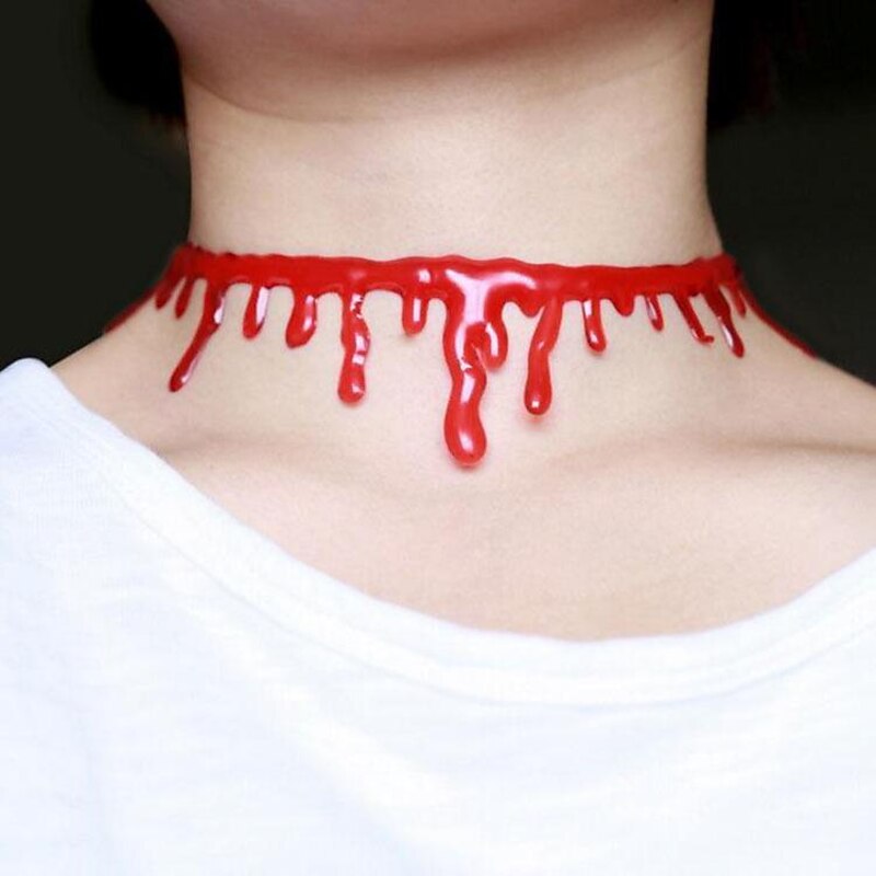 HOT ! Cut Bloody Necklaces Halloween Props Jewelry Irregular Bloodstained Necklaces Halloween Creative Necklaces
