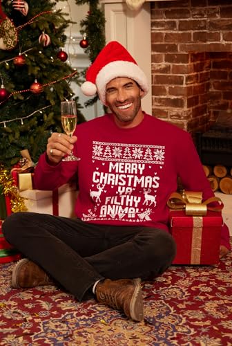 Arvilhill Men's Christmas Sweatshirt Fleece Crewneck Graphic Xmas Reindeer Cotton Pullover Red L 1