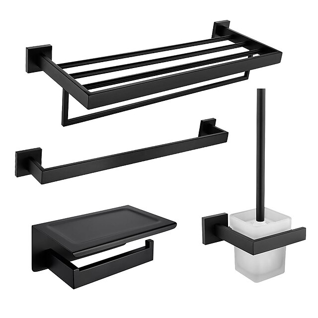 Bathroom Hardware Set 4 Pieces, SUS304 Stainless Steel Remodeled Wall Mounted Bathroom Accessories, Include 1 Towel Rack, 1 Towel Holder.1 Toilet Paper Holder,1 Toliet Brush Sets 3