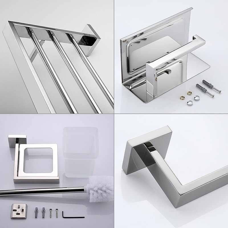 Bathroom Hardware Set 4 Pieces, SUS304 Stainless Steel Remodeled Wall Mounted Bathroom Accessories, Include 1 Towel Rack, 1 Towel Holder.1 Toilet Paper Holder,1 Toliet Brush Sets 11