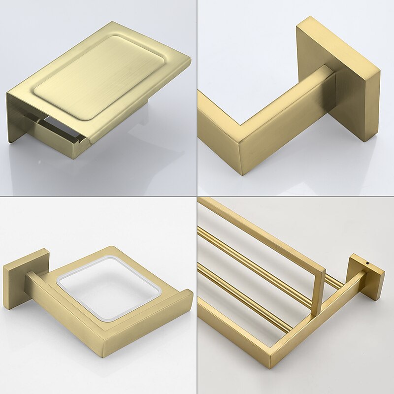 Bathroom Hardware Set 4 Pieces, SUS304 Stainless Steel Remodeled Wall Mounted Bathroom Accessories, Include 1 Towel Rack, 1 Towel Holder.1 Toilet Paper Holder,1 Toliet Brush Sets 5