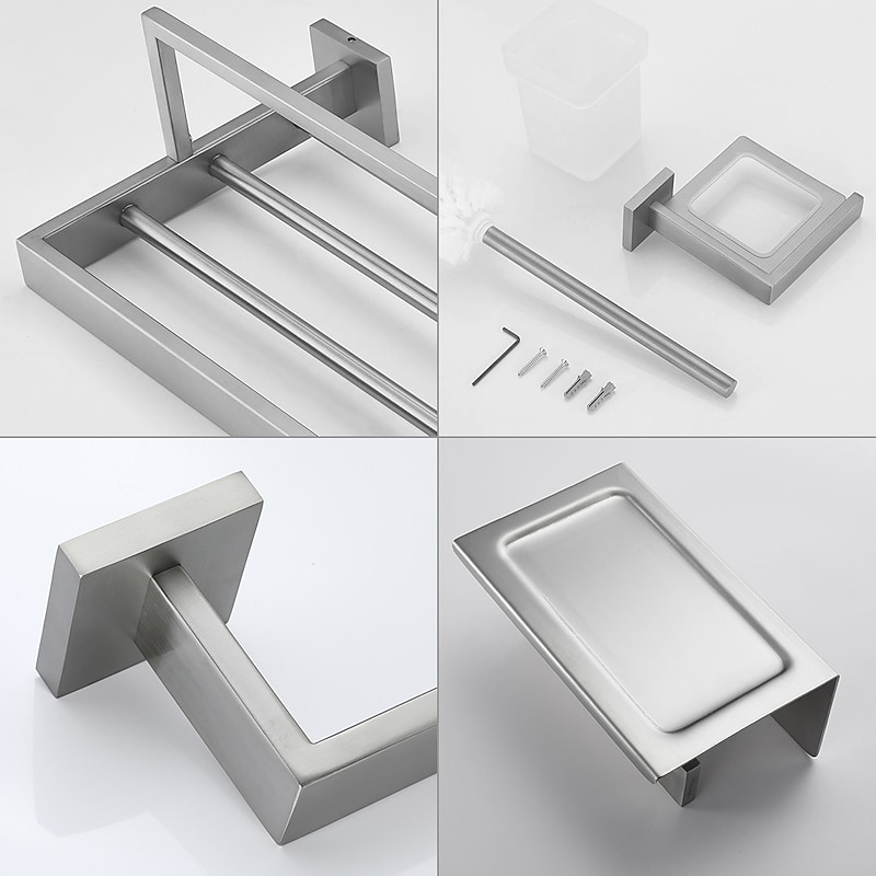 Bathroom Hardware Set 4 Pieces, SUS304 Stainless Steel Remodeled Wall Mounted Bathroom Accessories, Include 1 Towel Rack, 1 Towel Holder.1 Toilet Paper Holder,1 Toliet Brush Sets 6