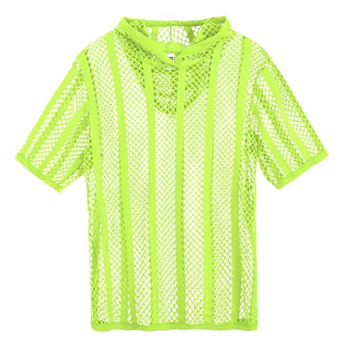 Men's Sexy See Through Fishnet Hoodies Short Sleeve T-Shirt Sheer Mesh Pullover 6