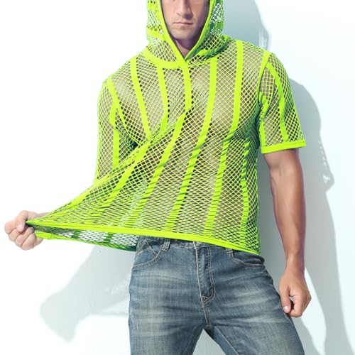 Men's Sexy See Through Fishnet Hoodies Short Sleeve T-Shirt Sheer Mesh Pullover 5