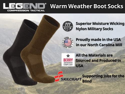LEGEND Compression Tactical Mid-Calf Boot Socks - Warm Weather Moisture Wicking Nylon Military Socks 6