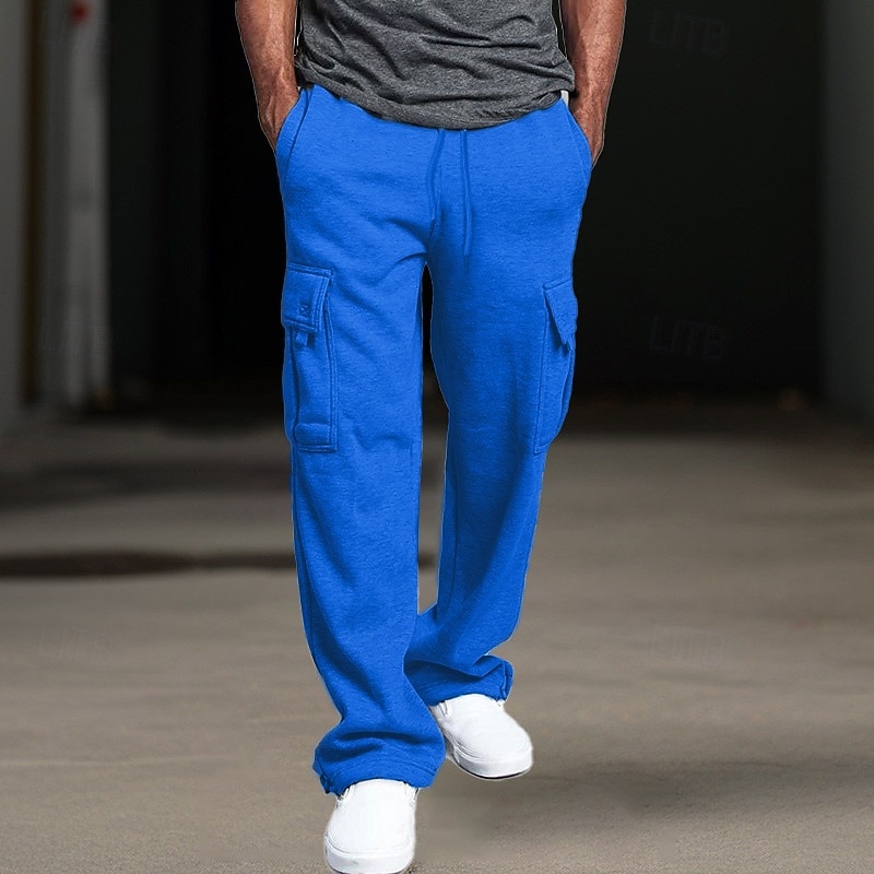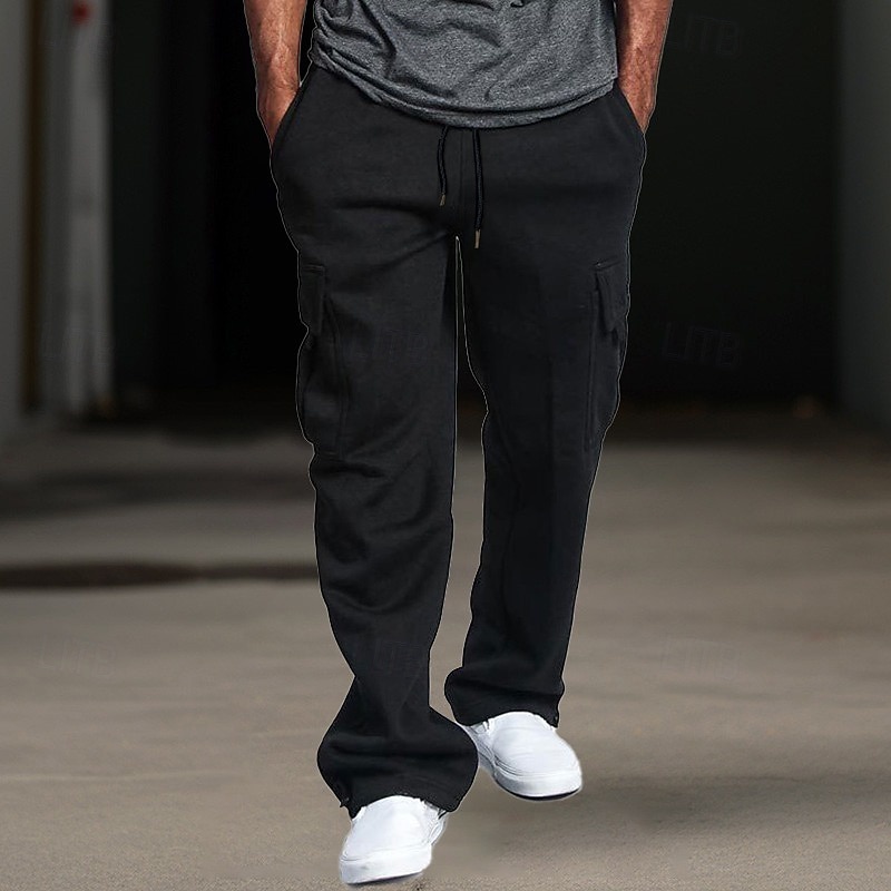 More information about Men's Fleece Pants Sweatpants Joggers Trousers Cargo Sweatpants Drawstring Elastic Waist Multi Pocket Plain Comfort Breathable Casual Daily Holiday Sports Fashion Black White