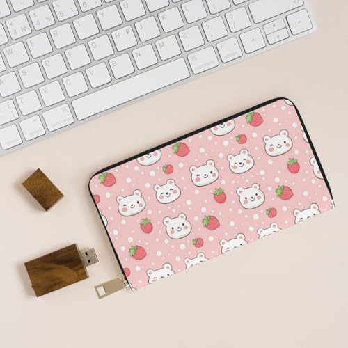 Leather Thin Slim Wallets for Women Men - Fashion Cute Bear Strawberry Print Card Wallet Holder with Zipper 1