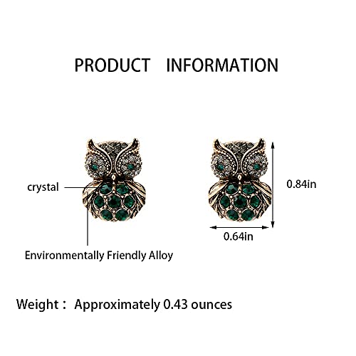 HOT ! Rofeego Owl Antique Stud Earrings/Gifts for Owl Enthusiast/Pave Green Crystal